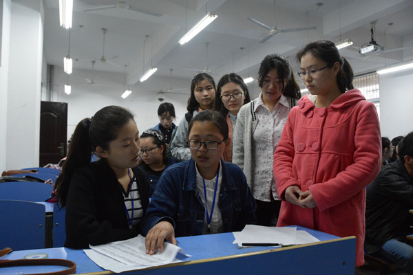 进考场,上讲台,选段朗读,随机提问,不断重复的流程,却总能展现出不同的志愿服务思想。杰出的外交家,著名的"将军大使"黄镇的生平事迹被大二的康宁娓娓道来,而大一的曹露露则用流利的英语讲述了“天仙配”的故事由来。或抑扬顿挫,或言语感染,140名志愿者将各自的能力展现的淋漓尽致。