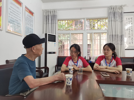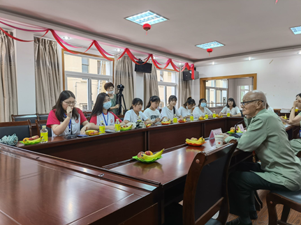 在学校离退休工作处的联系和帮助下,实践团有幸拜访了学校退休教师、抗美援朝老战士张雨恩,他15岁参军,如今已有90岁高龄。他向同学们详细生动地讲述着在战场上的点点滴滴——详细到每位炮手的职责,每种枪支弹药的有效范围。队员们随着张雨恩老先生的讲述走进了那段烽火岁月和建设时期,领悟到了退伍军人退伍不褪色、退役不退志、离军不离党的伟大奉献精神,深刻体会了如今和平与强盛的来之不易,增进了对红色文化的深入了解,坚定了理想信念。