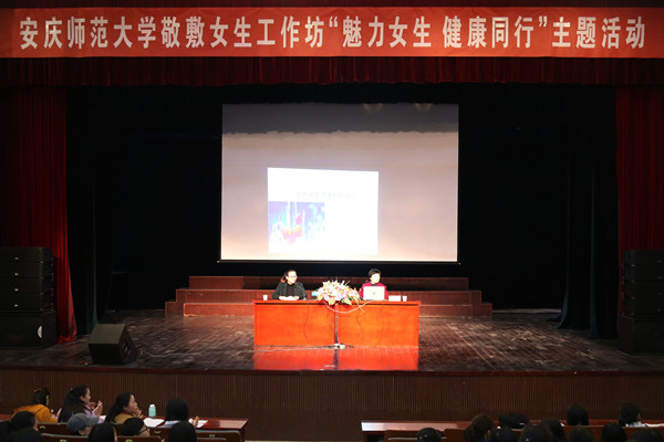 3月8日下午,纽约国际官网敬敷女生工作坊在音乐厅开展了“魅力女生,健康同行”主题活动,借着妇女节之际,向广大女大生宣传健康保健知识,提高大家的健康保健与安全自卫意识,来自各个学院的400余名女生参加了此次活动,拉开了该工作坊2017年专题教育与素质拓展的帷幕。