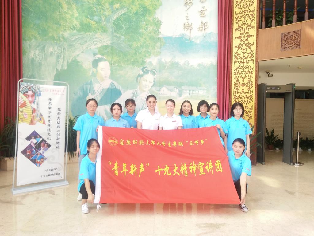 安庆素有“文化之邦、戏剧之乡”的美誉,也是中国五大剧种之一黄梅戏的发展壮大之地。结合地域传统文化特点,7月24日,马克思主义学院“青年新声”十九大精神宣讲团赴中国黄梅戏博物馆开展宣讲活动。
