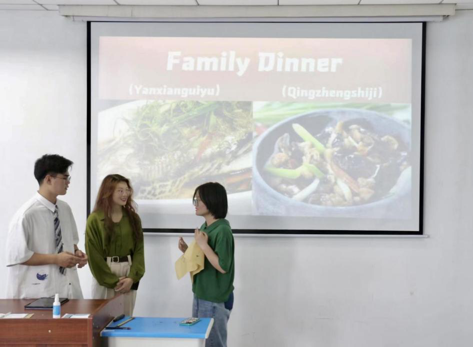 第一队为我们讲述“和”的故事,主人公以开放包容的心态和思维方式联系中外文化,为我们提供了交流的有效借鉴模式。第二队则以善意的谎言作为切入点讲述中美文化差异,并在情境表演中提出解决方法。第三队将视线转向校园生活,通过中、美学生在不同事件上的处理方式,生动地展现了文化多样性。其中,两种文化产生碰撞融合后,相互融合、和谐共生,为如何解决跨文化交流难题做出了优秀示范。表演结束后,评委老师们对选手进行提问,考察他们的逻辑思维和临场反应能力,并对答辩给予了点评和建议。
