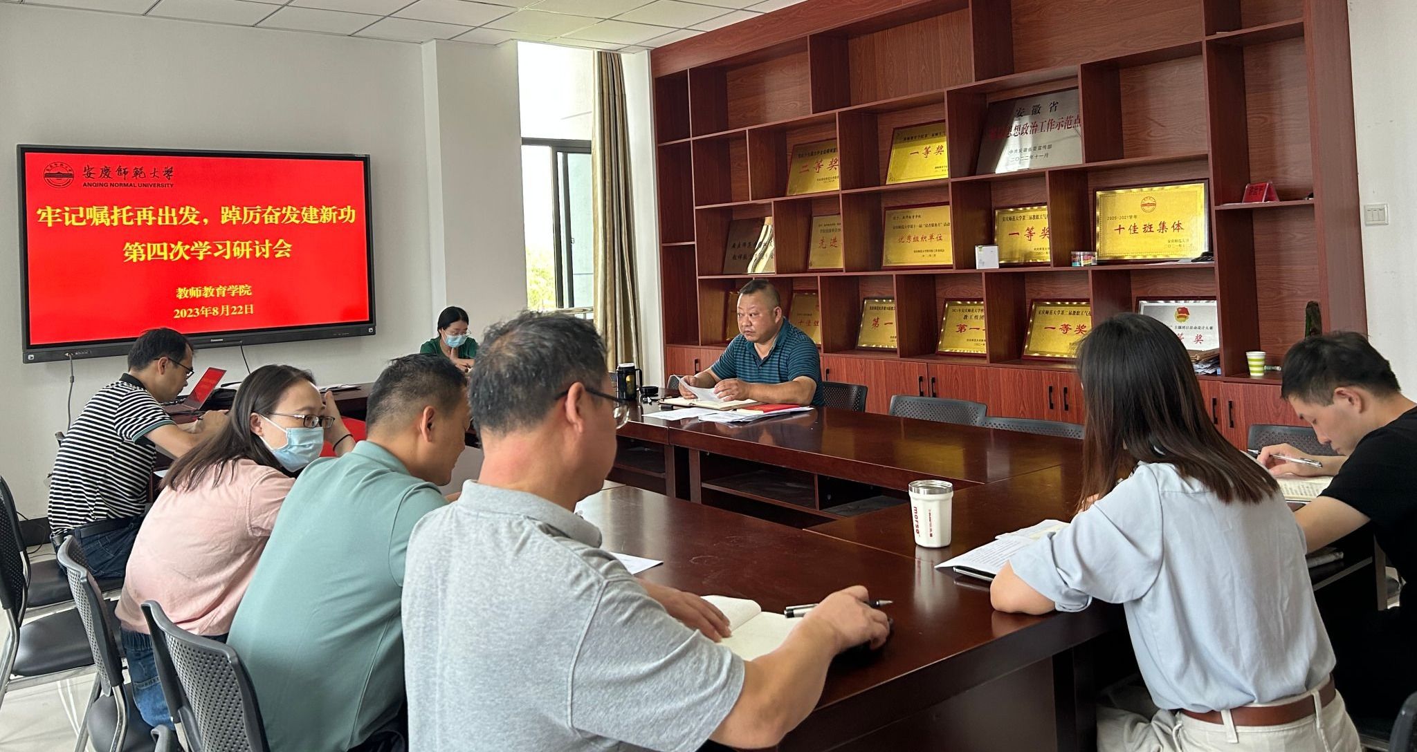 8月22日,教师教育学院开展“牢记嘱托再出发 踔厉奋发建新功”第四次学习研讨会。学院党委理论学习中心组成员、党支部书记参加,党委委员吴云助主持学习研讨会。