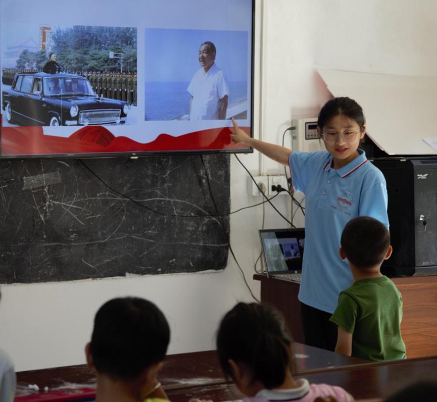 从“星星之火,可以燎原”到“改革开放”再到“庆祝红军长征胜利八十五周年”,实践团成员化身党史说书人,将党的百年风雨历程浓缩在几天的课堂中,向小朋友们介绍了中国共产党在时代变迁中带领中国人民所进行的革命、改革与建设。