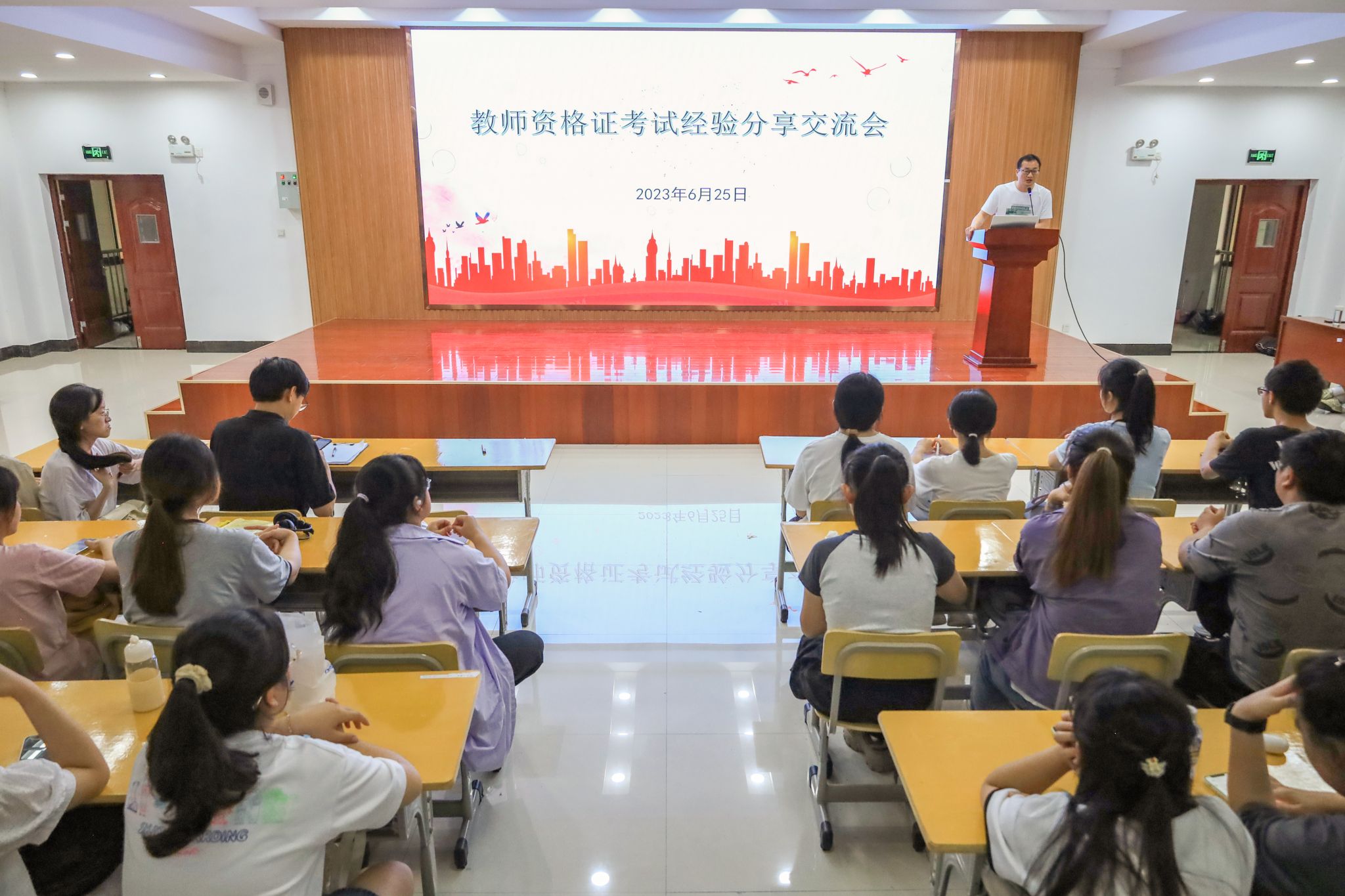 6月25日,数理学院在学院401报告厅举办教师资格证考试经验分享交流会。本次交流会邀请了学院教务负责教师孙建成和4名教资考试国考成功“上岸”学子为同学们分享备考经验。学院团委负责人和170余名学生参加此次活动。