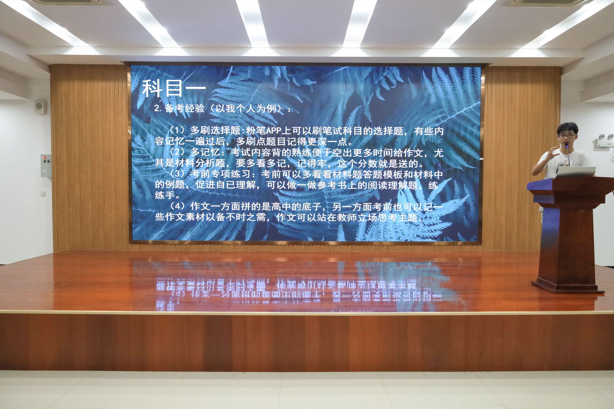 四位国考成功“上岸”同学结合自身学习方法与备考经验,针对学生准备教师资格证考试过程中常见的疑难困惑给出建议。从考察的题型、应对措施到温馨提示,物理学专业2020(3)班的葛路朋对科目一综合素质、科目二教育知识与能力、科目三学科知识与能力的应试技巧进行了详细说明。他认为,暑假是备考教资的黄金时间,学生应珍惜时间,提高学习效率。“‘星光不问赶路人,时光不负有心人’,无论是考教资还是以后的考编考研,只要大家坚持下去一定会有所收获,希望学弟学妹们都能享受充实的大学生活。”数学与应用数学专业2020(2)班陈允豪着重强调了面试考试的注意事项和心态调整技巧。“面试分为回答结构化问题、试讲和答辩,大家在备考过程中一定要勤加练习,做到解答有条理,分析有逻辑。”他指出,考生应放平心态积极应对,做好充足的准备。