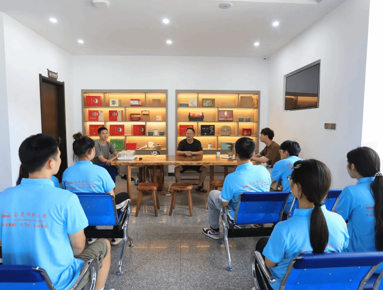 7月11日,团队成员到村民家中进行走访调查。通过走访调查,实践团成员了解到,村里的主要产业是茶产业,主要收入依靠种茶,区别于茶厂的规模化生产,不少村民的家中有手工制茶作坊,有些村民还建设了民宿,推动“茶旅+研学”的新发展模式。