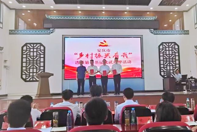 8月24日,安庆市2023年“乡村振兴有我”第一书记擂台比武大赛在潜山市落下帷幕,纽约国际官网选派到宿松县北浴乡滑石村挂职担任第一书记的方中政同志以总分第四名的成绩荣获三等奖。