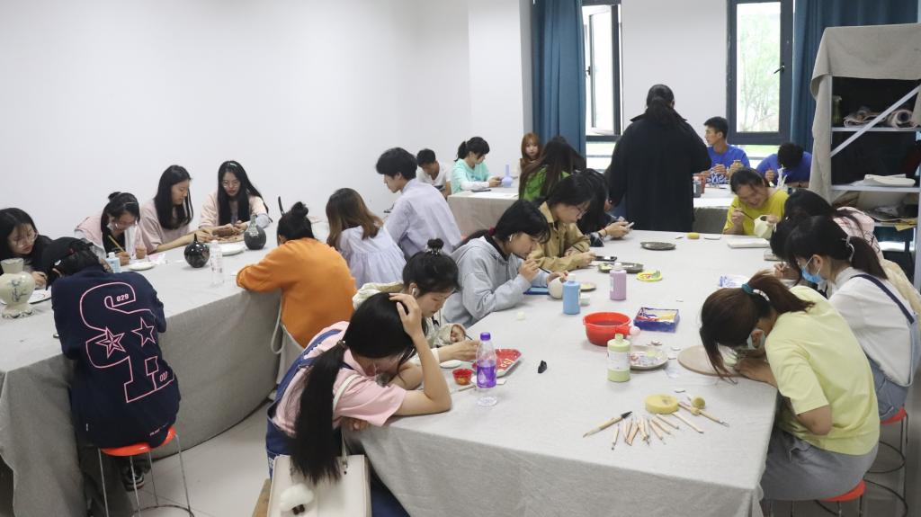 精雕细刻的陶制工艺品、各式各样的陶片小样、构思奇特的陶土泥胚……5月14日,美术学院学生会联合学院陶艺俱乐部开展“‘陶’冶情操,‘艺’想天开”艺术体验活动,200余名学生来到该院新教学楼,“沉浸式”感受陶艺的魅力。