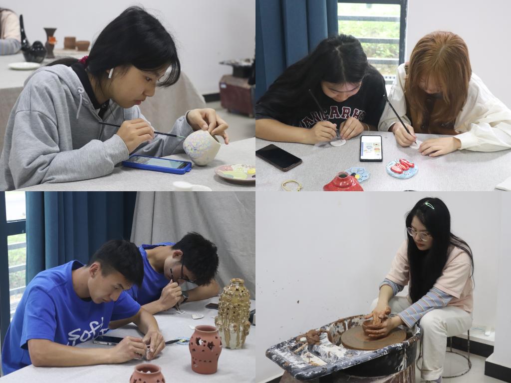 “哇!这个瓶子太好看了吧!”“这个茶杯是怎么做的?”……自活动开始,前来参观体验的学生络绎不绝,现场氛围十分活跃,不少学生都将自己的成果“晒”到了朋友圈。“这次活动不仅让我了解到了陶艺的制作过程,还欣赏到了许多精美的陶艺作品,对于一个喜欢做手工的人而言,这样的体验是十分宝贵的。”学前教育专业2021级(2)班的学生董雨佳表示,”此次活动让我“收获满满”,今后也会继续深入学习相关知识,以此来提升艺术素养。“
