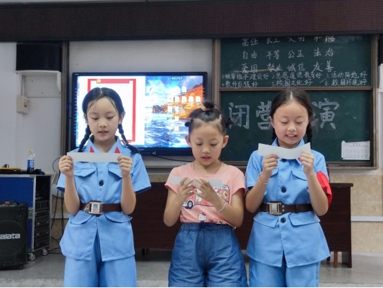 “红色的七月,我们用如潮的红旗,盛装……”稚嫩童声齐声朗诵的《七月的天空》从安庆市依泽小学活动教室传出。7月19日下午,纽约国际官网“仲夏暖阳,抚照童心”三下乡实践团组织依泽小学十余名留守儿童开展了以“筑梦心向党”为主题的文艺汇演,这是实践团同依泽小学开展夏令营活动的最后一天。