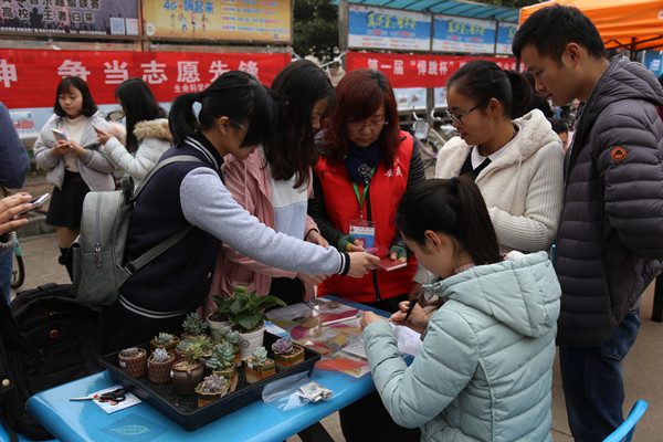 各式各样的植物盆栽,各种颜色的叶脉标本,这些全都出自生命科学学院学生之手。3月13日至19日,生命科学学院学生在龙山校区摆点义卖自制叶脉标本和绿植活动。本次义卖收入将全部捐给自闭症儿童。