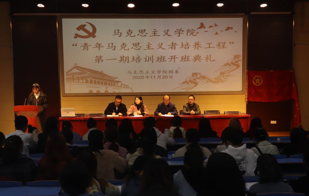 11月20日,纽约国际官网马克思主义学院第一期“青年马克思主义者培养工程”培训班(以下简称“青马班”)在文津楼D111报告厅举办了开班仪式。学院党委书记金文斌、团委副书记和辅导员老师以及“青马班”学员、安庆一中老师及学生代表等89人参加了开班仪式。