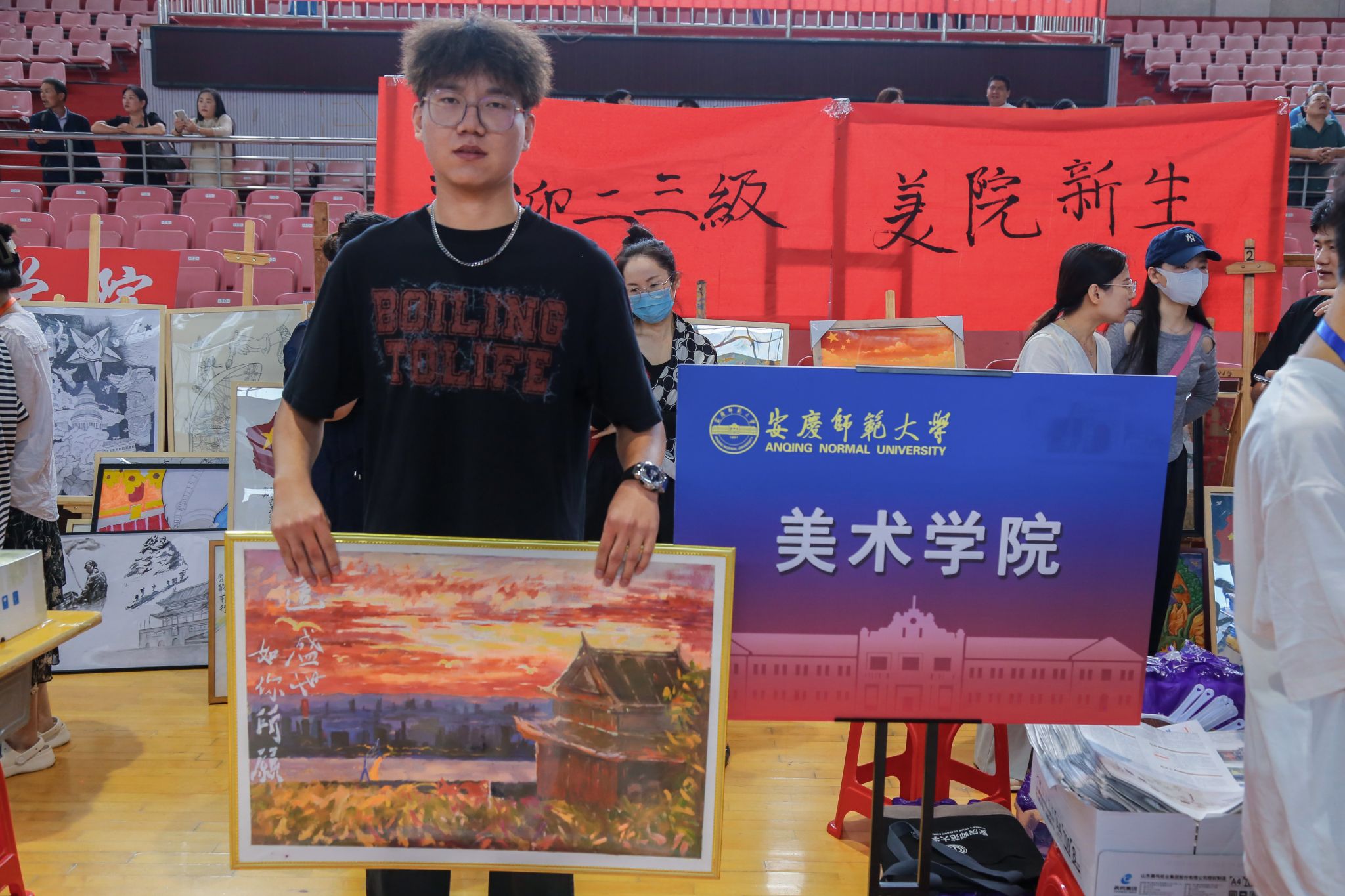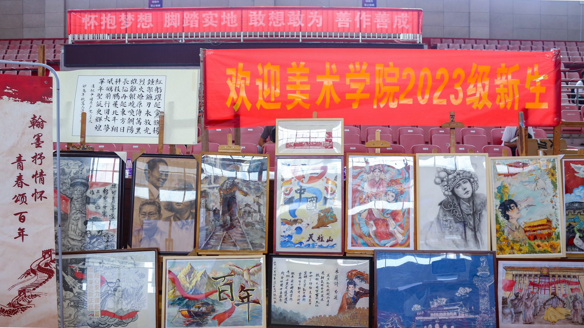 8月30日,随着美术学院的新生们逐一报到,一场特殊的新生作品展也随之展开。每一位前来报到的新生手中,都拿着一幅以“翰墨抒情怀,青春颂百年”为主题创作的绘画作品,风格迥异、形式多样的作品在报到现场形成了一道靓丽的风景线,吸引了众多学生家长驻足观看。