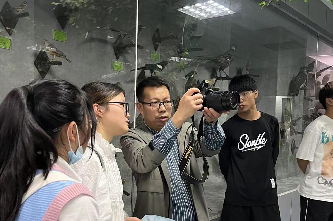 “老师,请问一下室内如何调亮光线?”“老师,拍标本构图怎么才合理呀?”……面对学生们的提问,《新闻摄影》任课教师雒有谋,用相机给学生们操作演示,将课堂搬进标本展馆,学生们纷纷表示,这样的课真是收获满满!