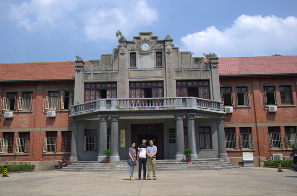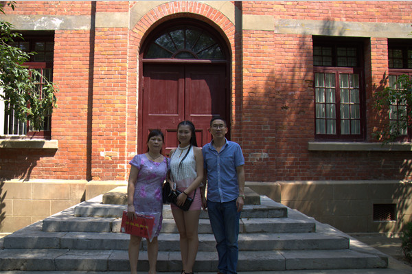 2015年9月10日 文学院文秘专业张文昊与父母在红楼面前合影留念
