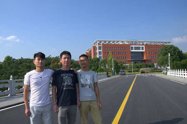 2015年9月10日 生命科学院到校的3名新生一同聚在图书馆合影
