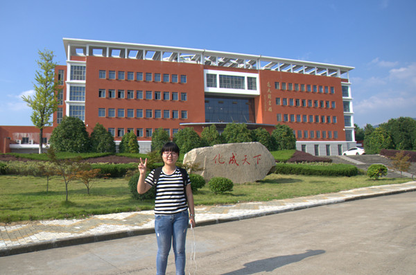 2015年9月10日数学与应用数学新生王凌炜第一次看到图书馆兴奋地与其“合影”