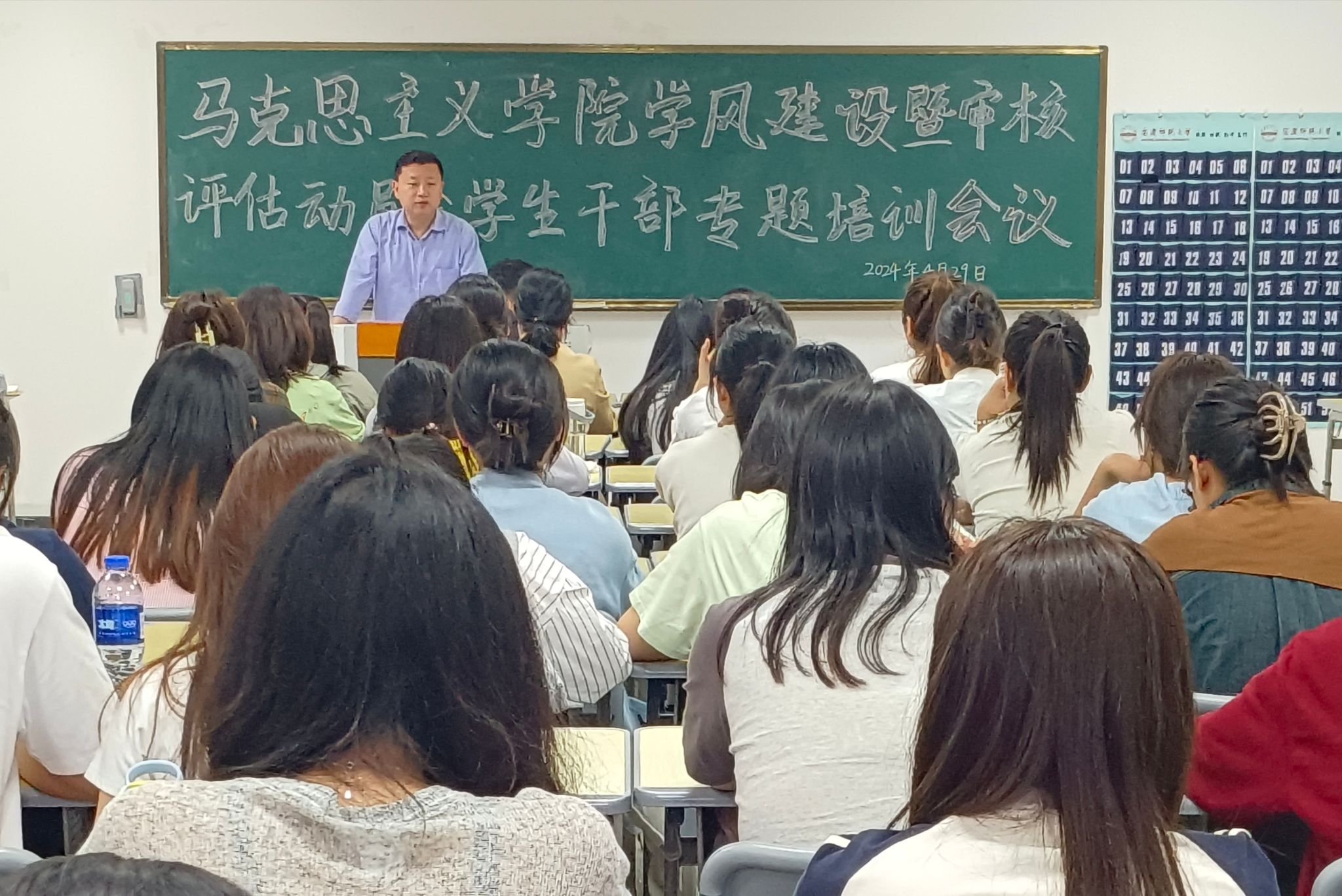 4月29日,马克思主义学院在Q楼212教室召开学风建设暨审核评估动员会学生干部专题培训会议。马克思主义学院党委副书记邹斌、学院副院长余江舟出席会议,学院专兼职辅导员及全体学生干部参加会议。