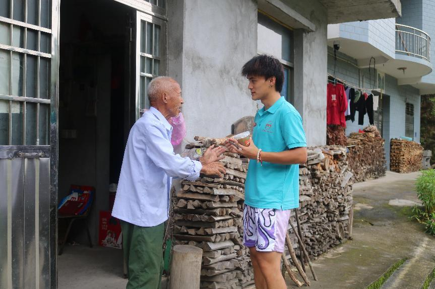 一切准备就绪,实践团成员们带着热腾腾的绿豆汤,踏上了前往老兵查显之家中的山路。“快进来,快进来!”76岁的查显之身着一身军装站在老屋门口,远远看见实践团成员便热情招呼。体育教育专业2023(4)班马子冉将打包好的绿豆汤亲手递到查显之手中。“看着查爷爷品尝后满意的笑容,我心里格外开心,今天一天的忙碌都是值得的。”