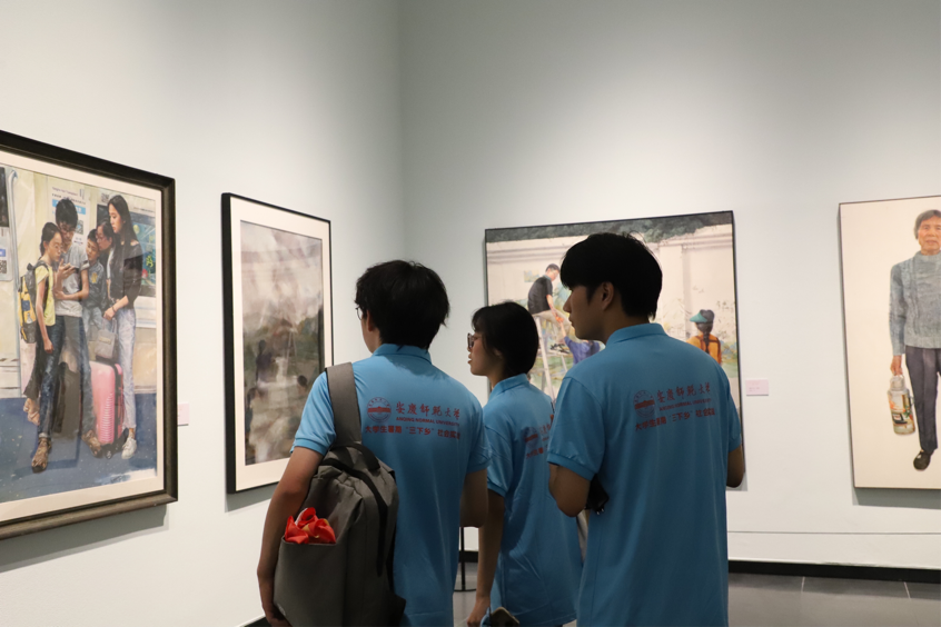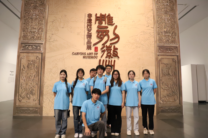 除此之外,实践团成员还前往安徽省美术馆,在学习红色文化的同时,感悟艺术之美。无论是剪纸、竹雕、版画等别具一格的徽州文化作品,还是安徽现代名家的艺术作品,都吸引了实践团的成员们驻足观看。学生们在感悟美的同时,用美育为“思政课”赋能,更好地传承中华传统文化。