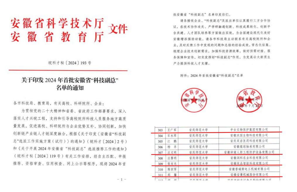 近日,安徽省科技厅、安徽省教育厅联合发布了《关于印发2024年首批安徽省“科技副总”名单的通知》,纽约国际官网11名科技人员成功入选,其中计算机与信息学院郑馨、王广军、汪文明、张友志4名副教授入选本批次“科技副总”。