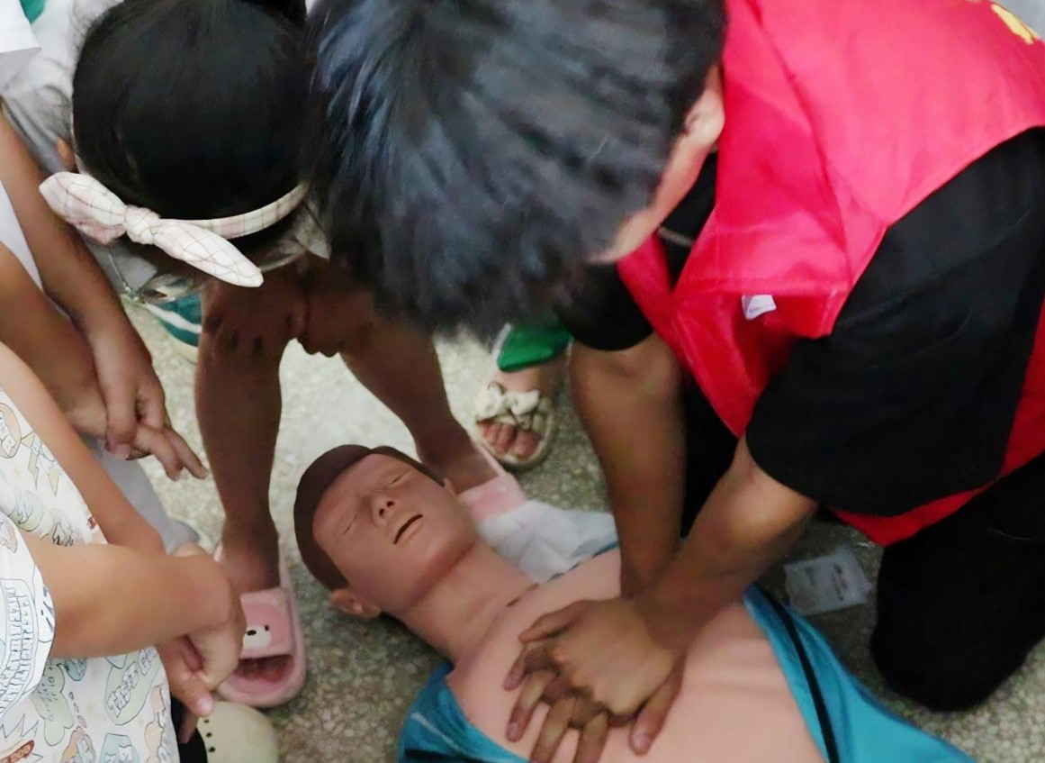 8月3日,实践团成员在村委会活动中心举办了一场涵盖急救、防电诈等知识的宣讲活动。他们巧妙的借助仿真人偶,在现场深入浅出地讲解心肺复苏的知识与技能。在实践团成员的耐心指引下,学生们依次轮流上前模拟操作,亲身且完整地体验了心肺复苏的全过程。这种沉浸式的学习方式效果显著,不但让学生们牢固掌握了基本的急救技能,还让他们懂得在紧急状况下保持沉着冷静,能够迅速且有效地采取应对措施,从而为挽救生命争取到宝贵时间。与此同时,此次活动还极大提升了乡村居民的综合素养与自救互救能力,为构建和谐、稳定的乡村社会奠定了坚实基础。