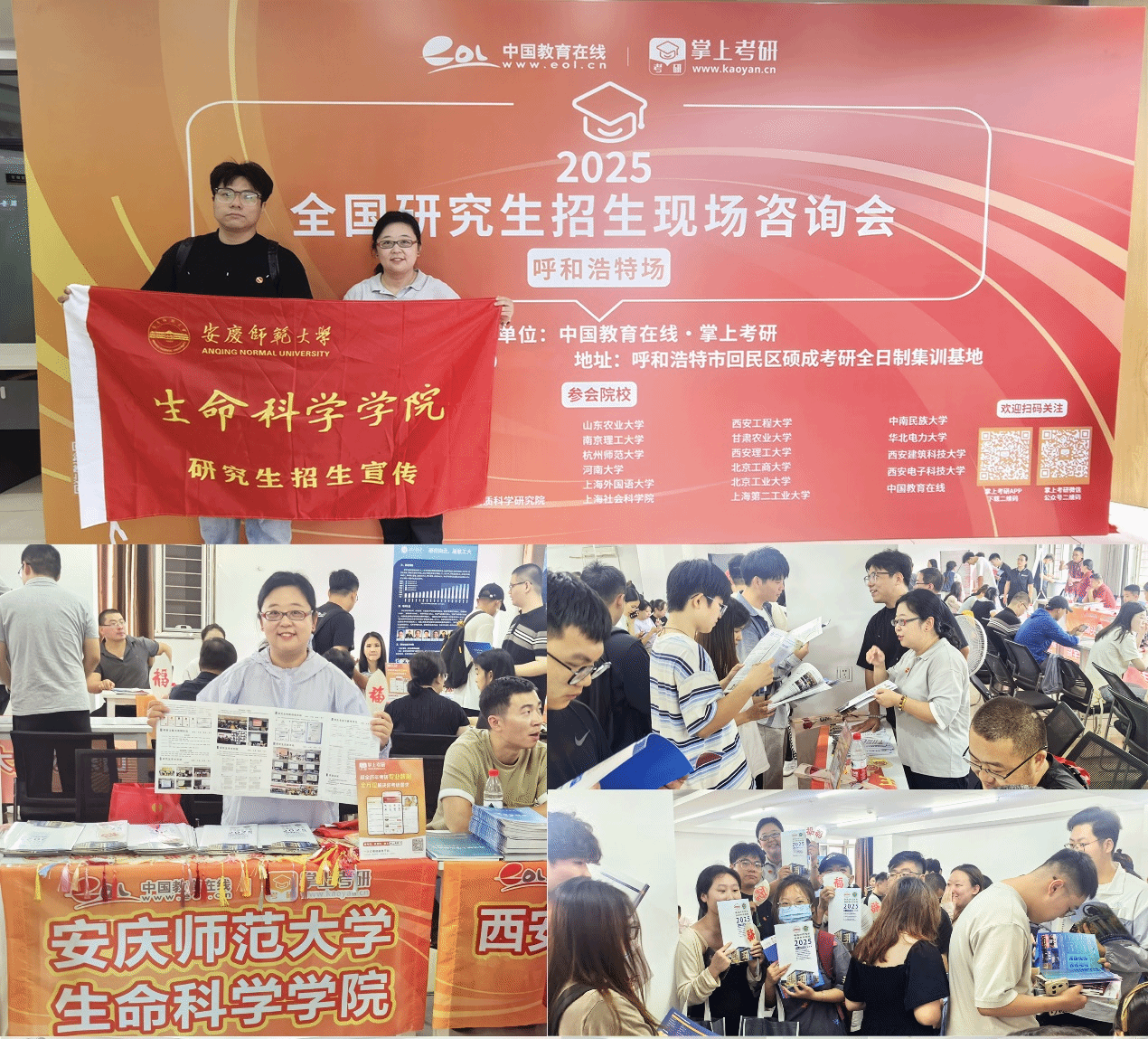 生命科学学院参加了中国教育在线·掌上考研主办的2025全国研究生招生现场咨询会(呼和浩特、包头场),与30余所高校共同举办多场咨询会,每场吸引500余名考研学子。现场通过独特的宣传方式和热情的互动交流吸引了广大考生前来咨询,并准备了寓意考研成功的精美叶脉书签,取得热烈反响。此外,还深入内蒙古农业大学等多所高校进行宣讲,考察生命科学学院相关实验室,深化了与地方高校的交流与合作。