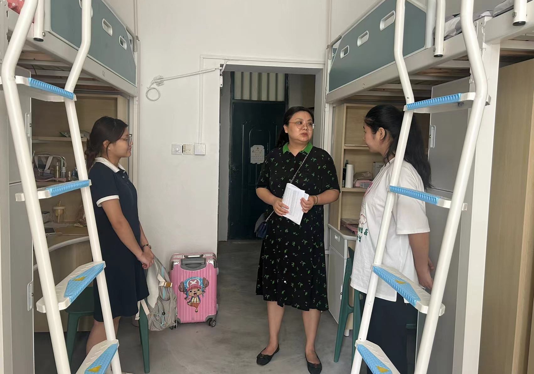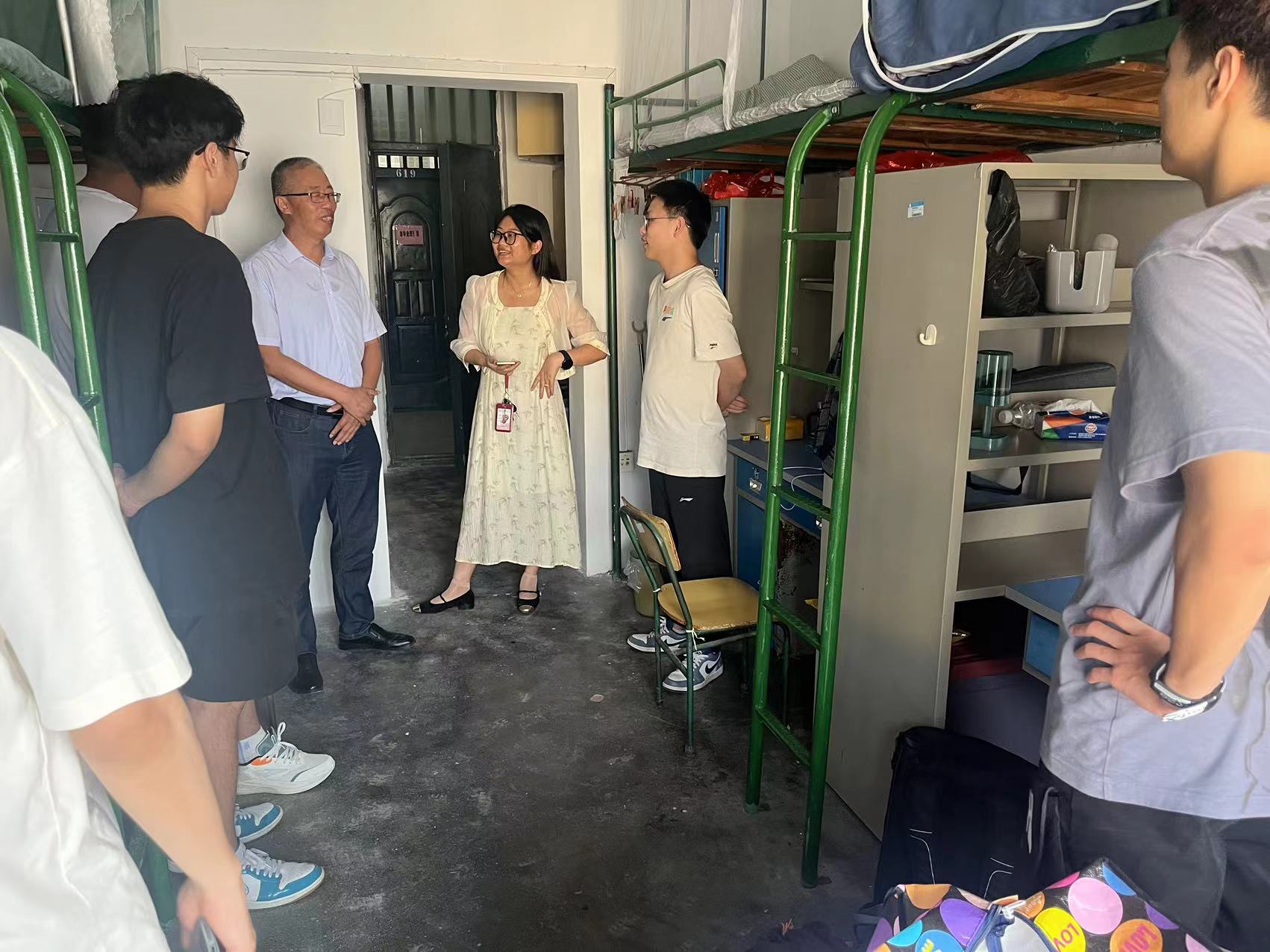 8月31日,外国语学院党委书记李亦亮、副院长江加宏、党委副书记何媛君带领全体新生辅导员深入学生宿舍,传递人文关怀。