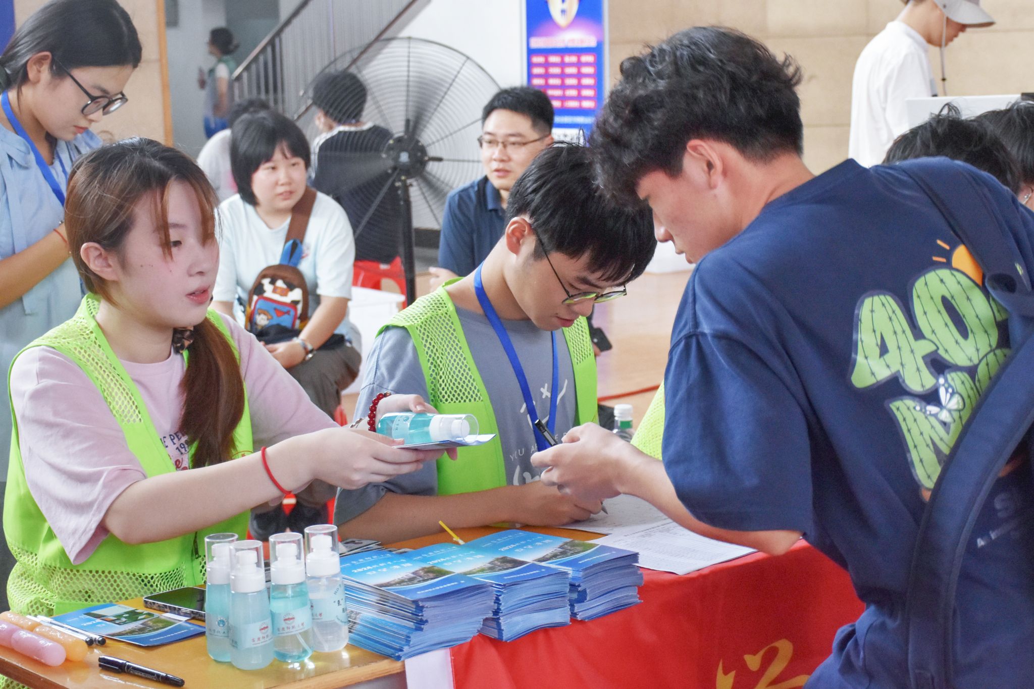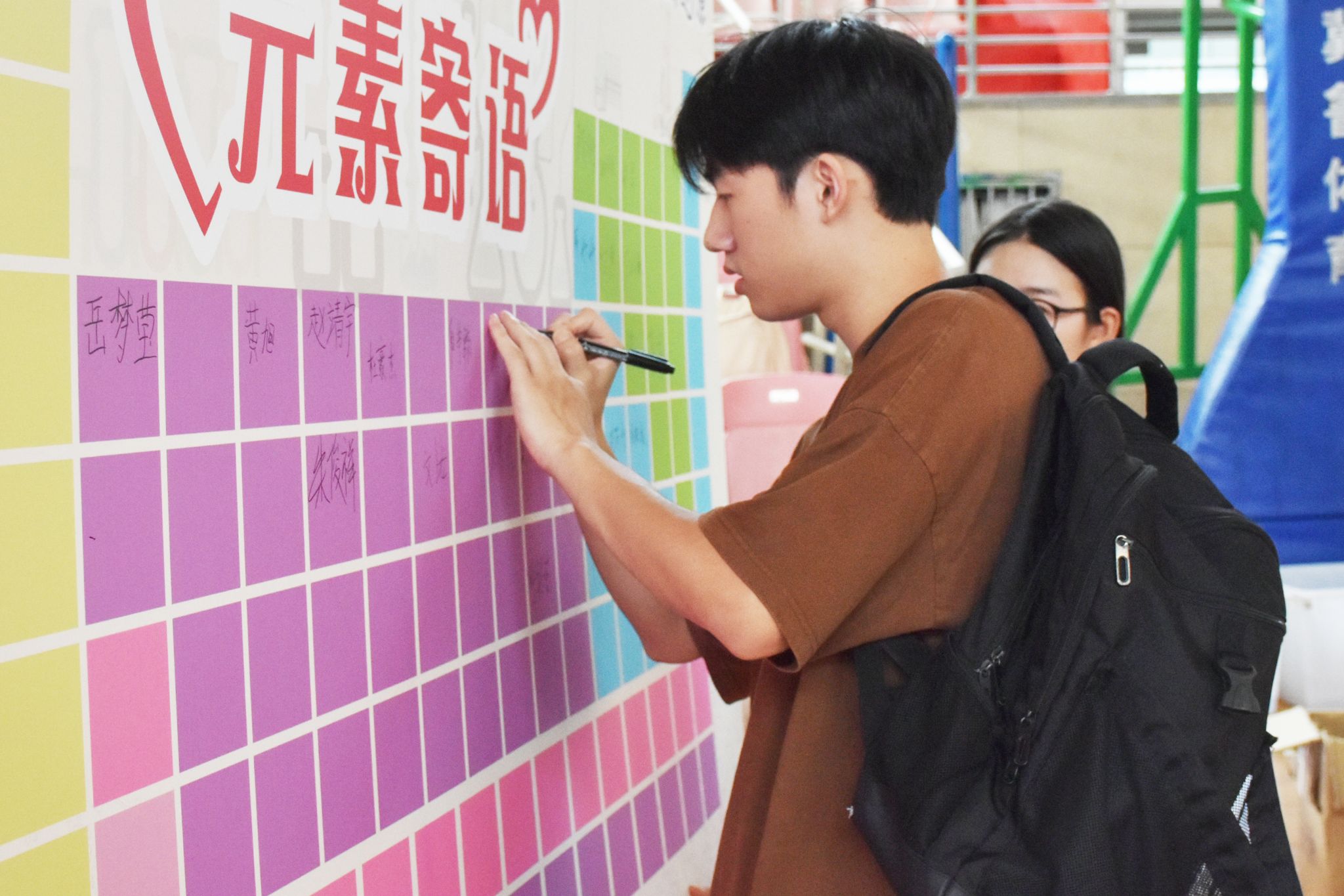 “哇,这是签名板吗?好有创意!”步入体育馆时,化学专业2024级新生杨欣怡被一面元素周期表的签名板深深吸引。报到现场,化学化工学院特别设置了“元素寄语板”,邀请每位新生在自己喜欢的元素空格内留下姓名和心愿。这一创意不仅让新生们感到新奇有趣,也让他们在开始大学生活之际,就与化学元素建立了独特的联系。此外,化学化工学院还发挥专业优势,将学生自制驱蚁液作为迎新礼物赠予新生,充分彰显了学科专业特色。化学专业2022级5班杨芳雨表示:“将化学元素融入迎新活动,让冰冷的化学符号瞬间充满了温度,也让新生们对学科专业有了更深的了解和期待。”