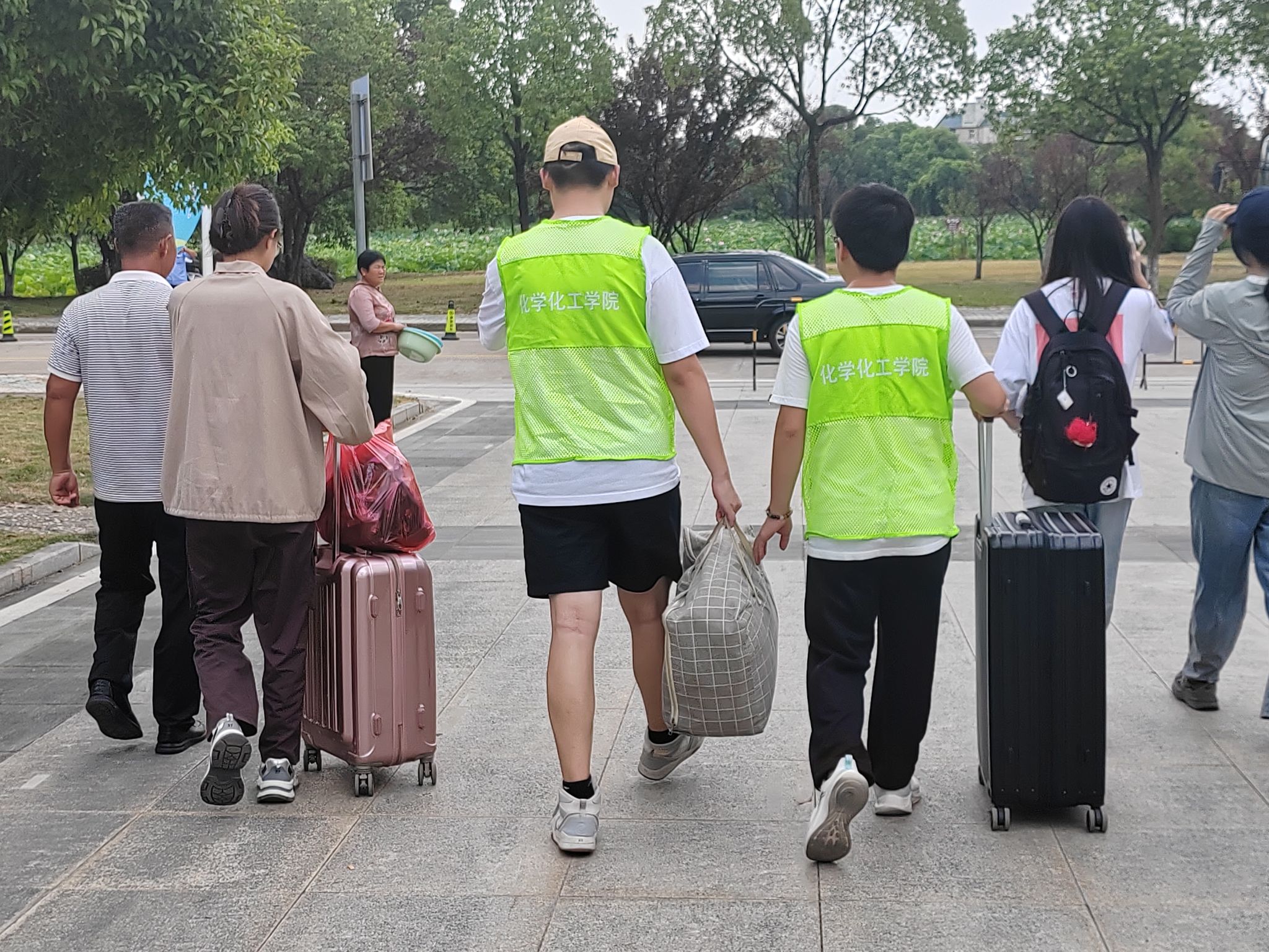 化学化工学院高度重视迎新工作。化学化工学院党委统筹协调安排新生入学报到工作,党政班子全程参与。身着鲜亮绿衣的志愿者分布在各个迎新点,热情细心地引导新生完成报到流程,帮助搬运行李,介绍校园环境,传授生活经验,一抹抹荧绿色身影奔走忙碌只为给予新生最贴心的保障。“同学你好,欢迎你加入化院大家庭”“我来帮你拿行李”“这是你的学生卡,请收好”一句句温暖的话语更让新生感受到了家的温馨。