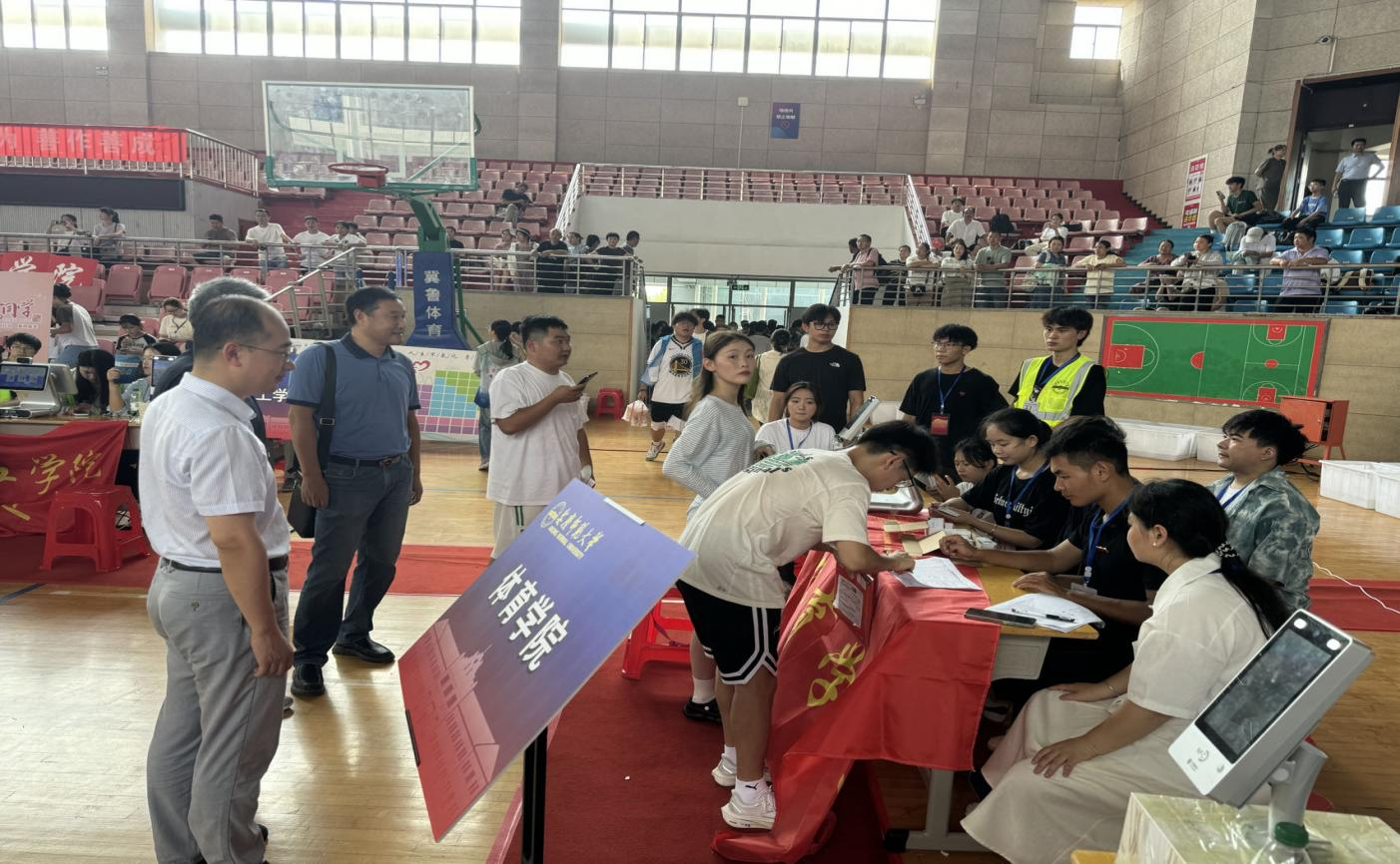新生报到当天,为保障每一个环节都能高效顺利进行,体育学院领导、辅导员、志愿者们早早到达现场,检查现场布置情况,沟通工作细节,熟悉工作流程。志愿者们在各自的岗位集结完毕,迎接新生的到来。他们统一佩戴工作证件,亮明的身份标识,分布在校园内的各个迎新区域,为新生提供全方位的引导与帮助。迎新志愿者们用最温暖的笑容和最诚挚的问候,为新生及家长送上了第一份来自学院的关怀。他们不断穿梭在寝室与报到现场之间,帮助新生及家长搬运行李,同时又化身为校园导游,带领新生参观校园,介绍学院文化及校园环境。报到现场,学院领导关怀了解新生报到情况,悉心指导现场工作并亲切慰问了在场志愿者们,他们与新生和家长亲切交流,鼓励新生积极融入大学生活,珍惜宝贵的学习机会。志愿者们分工明确、各司其职,熟练掌握报到流程,引导新生们按照既定流程完成身份核验、登记、发放材料等报到手续,耐心解答他们的疑问,帮助新生们顺利完成入学报到。