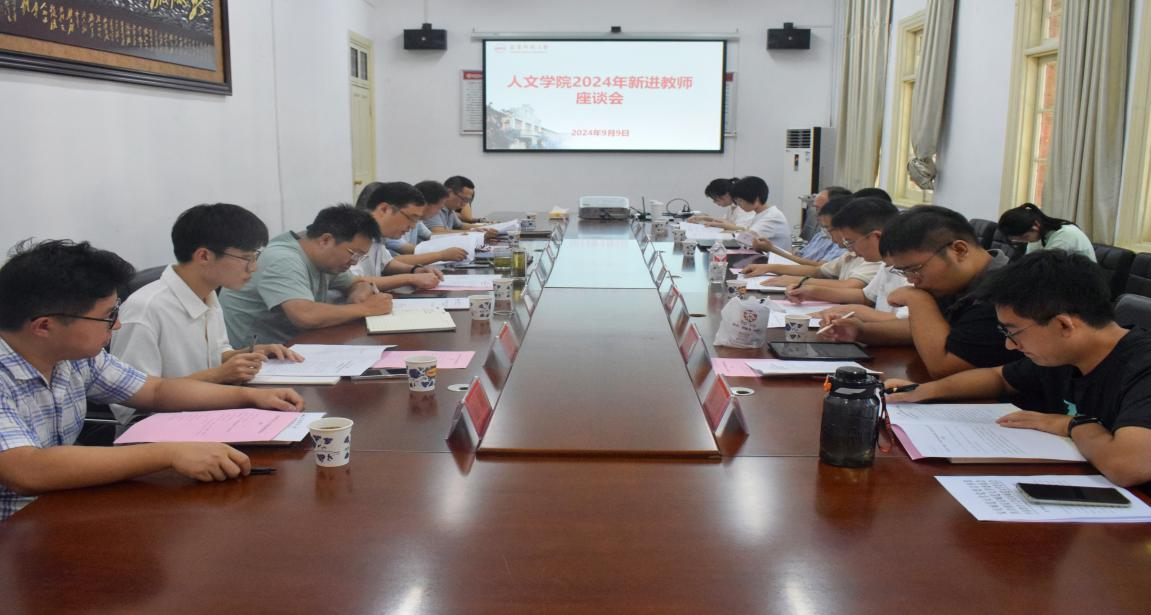 9月9日,人文学院召开新老教师座谈会。人文学院班子成员与全体新进教师共话新教师成长路径、共谋学院发展大计。