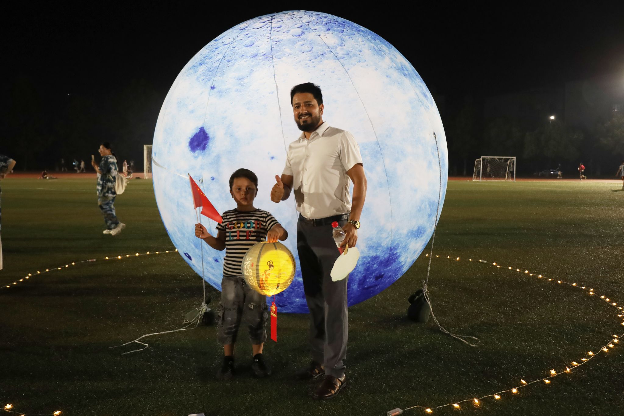“我的学生说今天晚上有很多有趣的活动,可以展现富有生命力的中华文化。”来自数理学院的外籍教师穆拉德说,中国与巴基斯坦友好往来,这是他来到纽约国际最新网站的第二年。在今晚的游园会中,他使用天文望远镜观月,聆听笛筝吹奏《浮光》,与众多学生在月球打卡点拍照,“我制作了一个灯笼给我的孩子,中秋节是中国传统节日,中国很美,安庆很美。”穆拉德说。