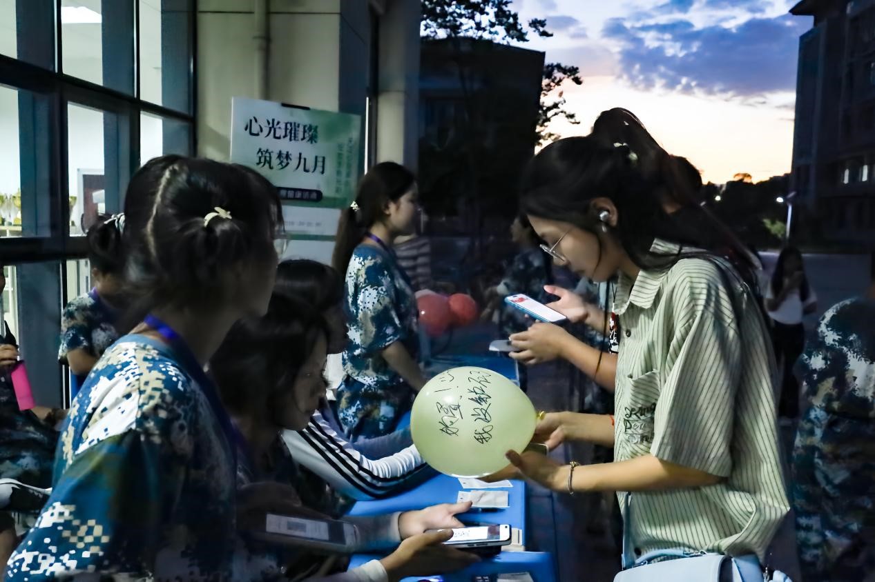 “先用打气筒将气球充满气,再把烦恼和焦虑写在气球的球面上,最后将气球踩爆。”活动的工作人员向围观的学生们介绍规则。在了解相关规则后,数名学生操起打气筒,将学业压力过大、人际交往的不顺、生活方面的不适应等烦恼与焦虑“注入”气球之中,而后用力踩爆。“太过瘾了!感觉像是把烦恼随着气球一起踩爆一般。”环境科学与工程类专业2024(2)班的程佳欣开心地说。她表示,这一踩,把入学以来人际关系的焦虑和对新生活的彷徨通通“踩爆”了。