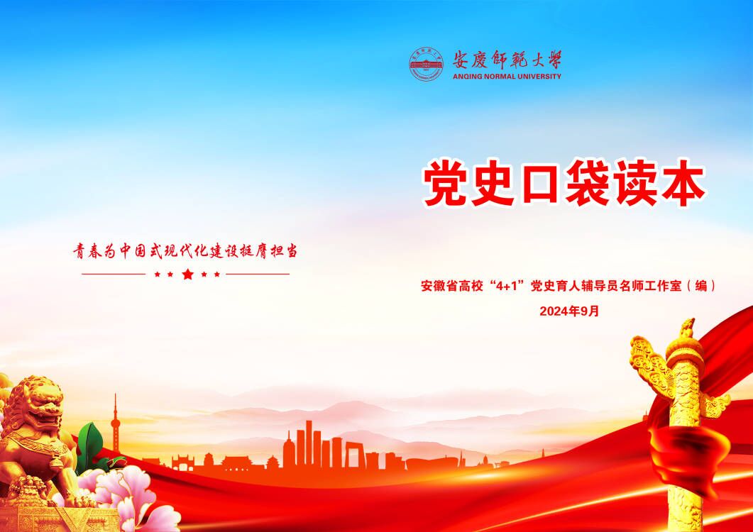 近日,安徽省高校“4+1”党史育人辅导员名师工作室利用安庆当地丰富的红色文化资源,挖掘党史中安庆知名人物的先进事迹,以陈独秀、陈延年、陈乔年、王步文、邓稼先、黄镇等身边人物的事迹为主要内容,并立足实际、积极探索、创新形式,增强学习的指向性和实效性,精心编印、向新生发放“党史口袋读本”。