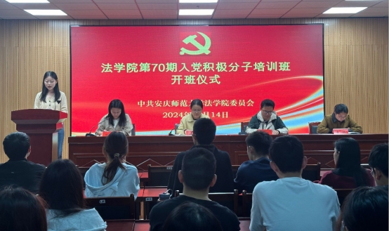 10月14日,法学院在法学楼法治实务大讲堂举办第70期入党积极分子培训班开班仪式。法学院党委书记钱敏、学生党支部书记和第70期全体入党积极分子参加开班仪式。
