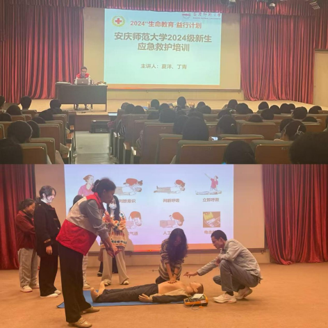 10月16日,校医院在菱湖校区图书馆报告厅开展2024级新生应急救护培训,人文学院和黄梅剧艺术学院共200余名新生参加。