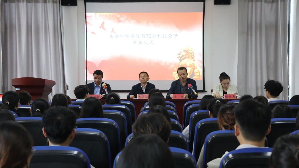 10月16日,生命科学学院举办第70期入党积极分子培训班开班式。开班式由生命科学学院党委委员、副院长李从虎主持。生命科学学院党委书记朱昌流,党委委员、院长吴彦,第70期全体入党积极分子等参加会议。