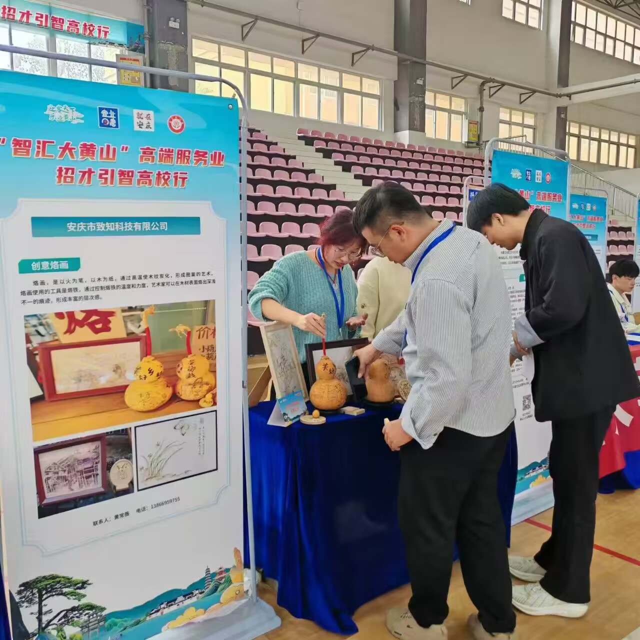 10月16日,生命科学学院应邀参加由黄山市人力资源和社会保障局主办的“智汇大黄山”高端服务业招才引智系列活动。该院数名学生走进安徽外国语学院进行非遗烙画的科普宣传活动。