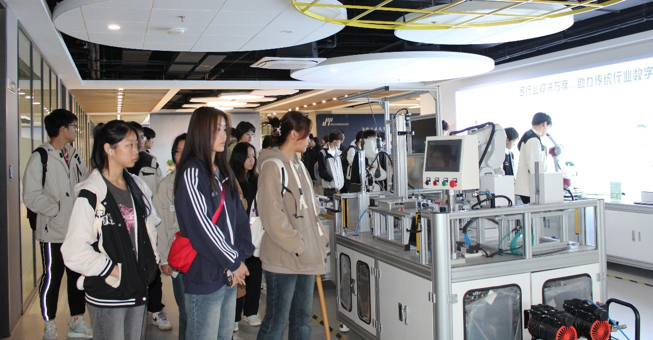 合肥工业大学智能制造研究院是国内领先的智能制造领域研究机构,拥有一支高水平的科研团队和先进的研发设备。在中科深谷集团副总裁蒋荣慰以及多名企业老师的引领下,同学们深入了解了研究院的研究方向、项目成果以及与企业合作的情况。参观过程中,同学们踊跃提问,积极参与讨论,充分展现了他们对科技创新和未来发展的浓厚兴趣。在参观过程中,同学们还亲身体验了智能制造的实验设备和技术应用。他们在研究院的专业人员的指导下,亲手操作了搬运机器人等智能机器人设备,深入了解了这些设备的工作原理和使用方法。这让同学们感受到了科技的魅力和创新的力量,激发了他们对科技创新的热情。