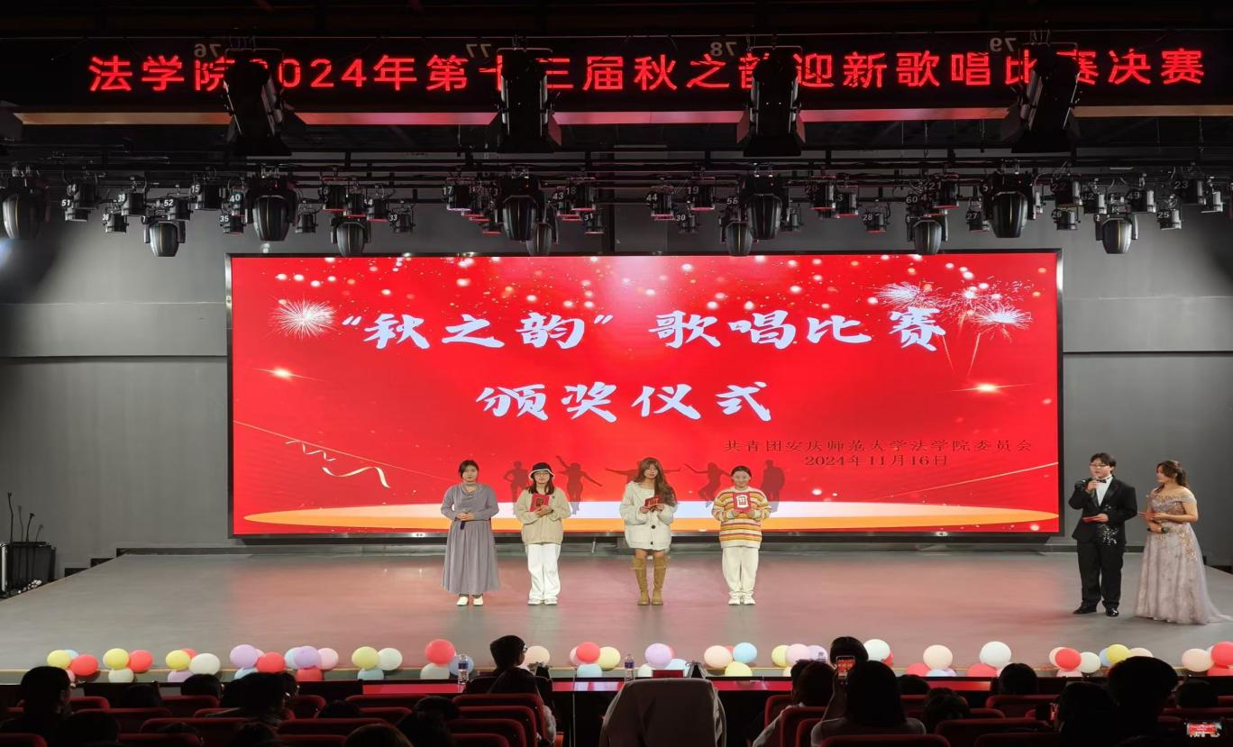 近日,法学院“秋之韵”迎新歌唱比赛总决赛在传媒学院演播厅激情唱响。本次比赛自启动以来,吸引了众多音乐爱好者的参与,历经初赛和复赛的激烈角逐,最终八位实力唱将脱颖而出,会师总决赛舞台,为观众带来了一场视听盛宴。