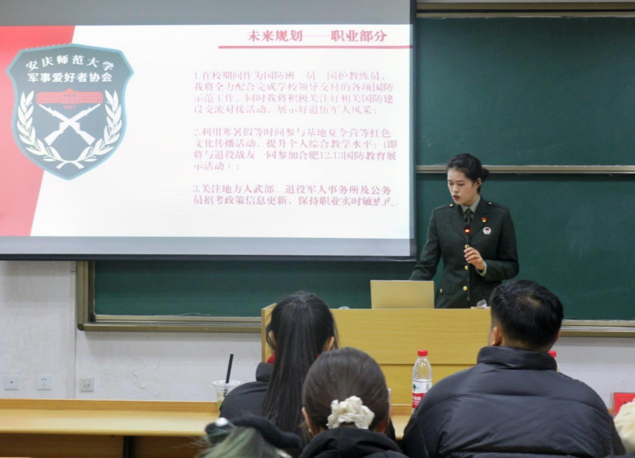 “过去五年在部队的经历非常珍贵,想与大家分享。我庆幸我的青春有穿军装的样子,而现在,我要奔赴下一个山海。”2023级商务英语1班谭宁,通过对自己部队经历、兴趣爱好以及当前学习进度的分析,对未来立志成为一名专职人民武装干部做出清晰规划。2023级英语2班周小焰在2023年寒假期间参加社区活动中,明确了自己想成为一名中学英语教师的目标。“教育是沟通现在与未来的桥梁,我也想成为一座横跨在知识的此岸与学生彼岸之间的桥梁。我希望能以专业知识为基础,承载学生们的希望。”