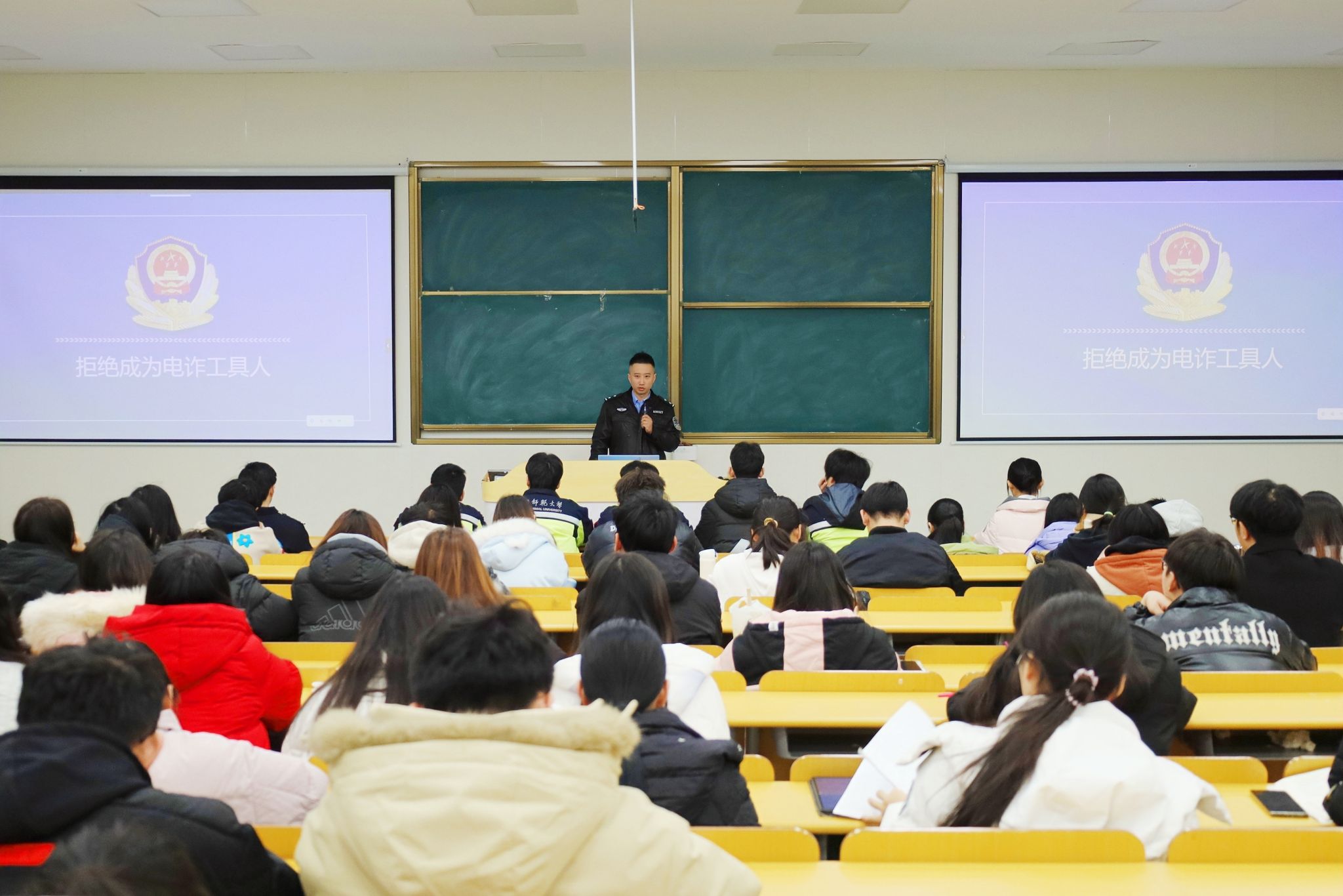 刷单返利类诈骗、虚假购物服务类诈骗、冒充电商物流客服类诈骗、网络交友诈骗、冒充领导熟人诈骗……结合一个个生动的案例和相关视频资料,授课民警详细介绍了十大高发电信网络诈骗类型,阐述了诈骗分子的各种作案手法和诈骗过程,揭秘了网络诈骗的种种套路。“这些诈骗类型手法各异,但都以骗取受害人的钱财为最终目的。”民警强调,大学生在日常生活中要提高防范意识,不轻信陌生来电和信息,保护好个人信息和财产安全。