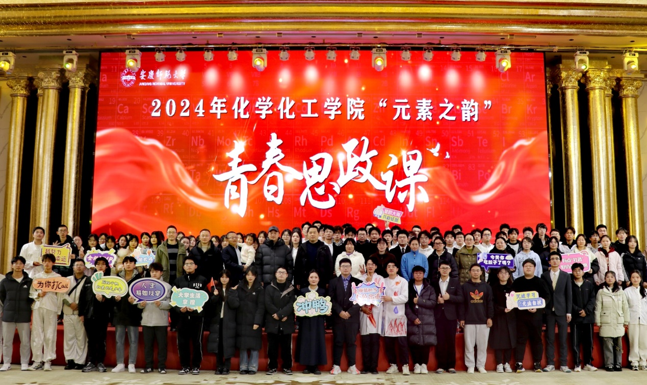 12月21日,化学化工学院2024年“元素之韵”青春思政课正式开课。该院党政班子、锦美星灿(安徽)新材料有限公司领导、教师代表和全体辅导员出席,600余名学生现场参加活动。