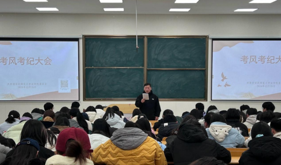 12月25日,法学院在文溯楼C108教室召开考风考纪教育大会,法学院团委负责教师做考风考纪专题宣讲。
