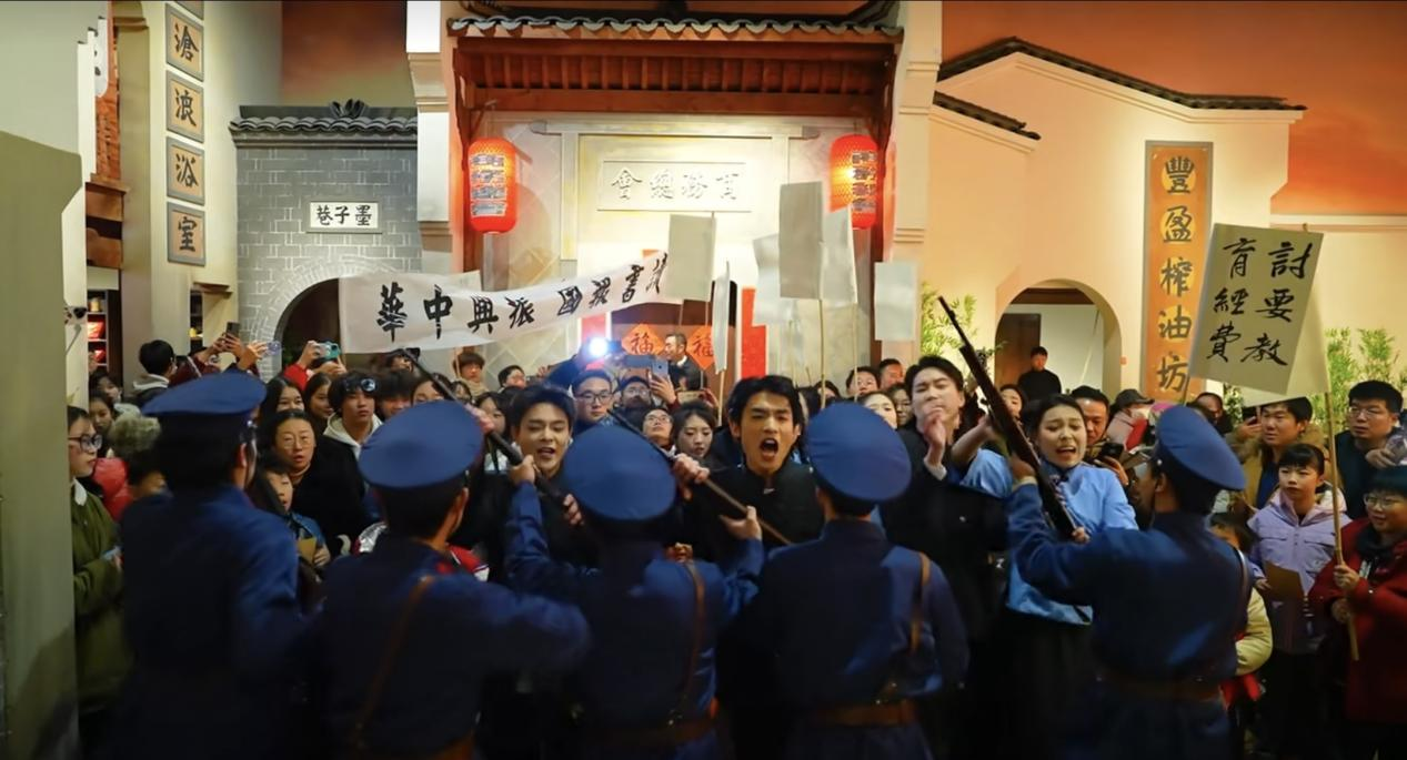 《醒皖第一声》以民国安庆“六二运动”为蓝本,由2022级戏曲与曲艺专业学位艺术管理方向研究生刘吉坤执导,2022级戏曲编导方向研究生杨米奇担任编剧,戏曲表演方向研究生和表演专业本科生共同演绎,借沉浸式戏剧再现当年安徽学生爱国运动的历史风云。