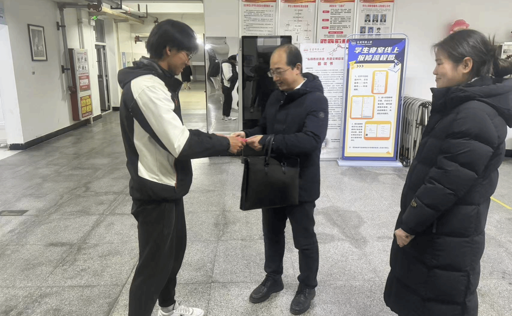 走访过程中,王玮代表学院为留校学生送上了新春祝福与慰问红包,详细询问了留校学生的学习和生活情况,叮嘱同学们留校期间要增强个人安全意识,重视日常生活安全,遵守宿舍管理规定,注意劳逸结合,保持身心愉悦。他强调,同学们在校要互帮互助,遇到困难及时联系辅导员,学院将切实帮助同学们解决问题。