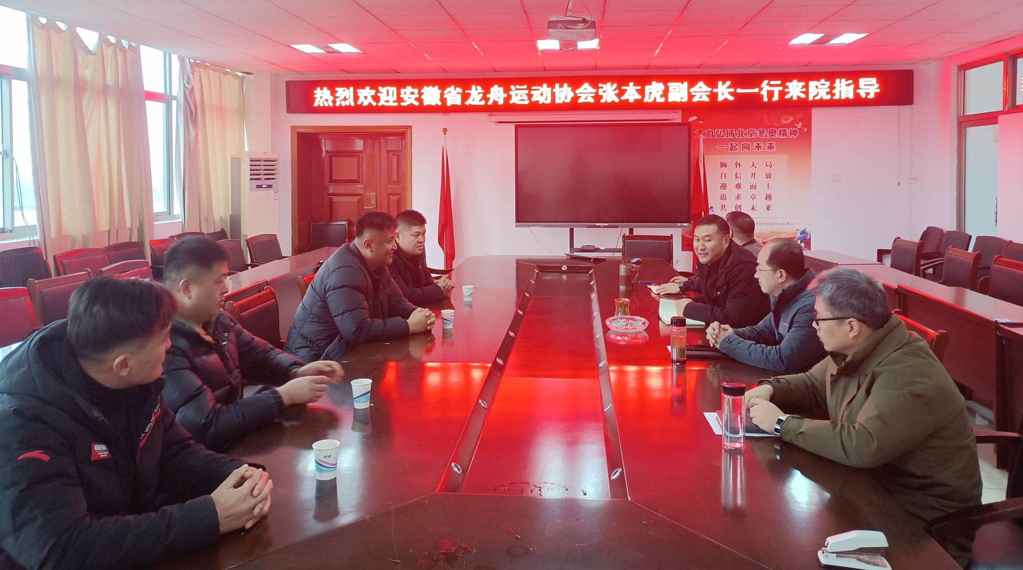 2月14日,安徽省龙舟运动协会副会长张本虎一行来到体育学院调研并洽谈龙舟赛事工作。体育学院党政领导班子、教研室主任参与座谈并陪同调研。