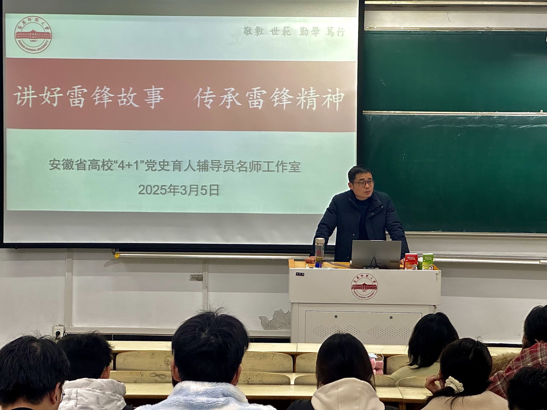 3月5日,电子工程与智能制造学院在稼先楼二楼多媒体教室举办“讲好雷锋故事、传承雷锋精神”主题报告会。安徽省高校“4+1”党史育人辅导员名师工作室负责人操龙德老师担任主讲,100余名2023级同学参加报告会。