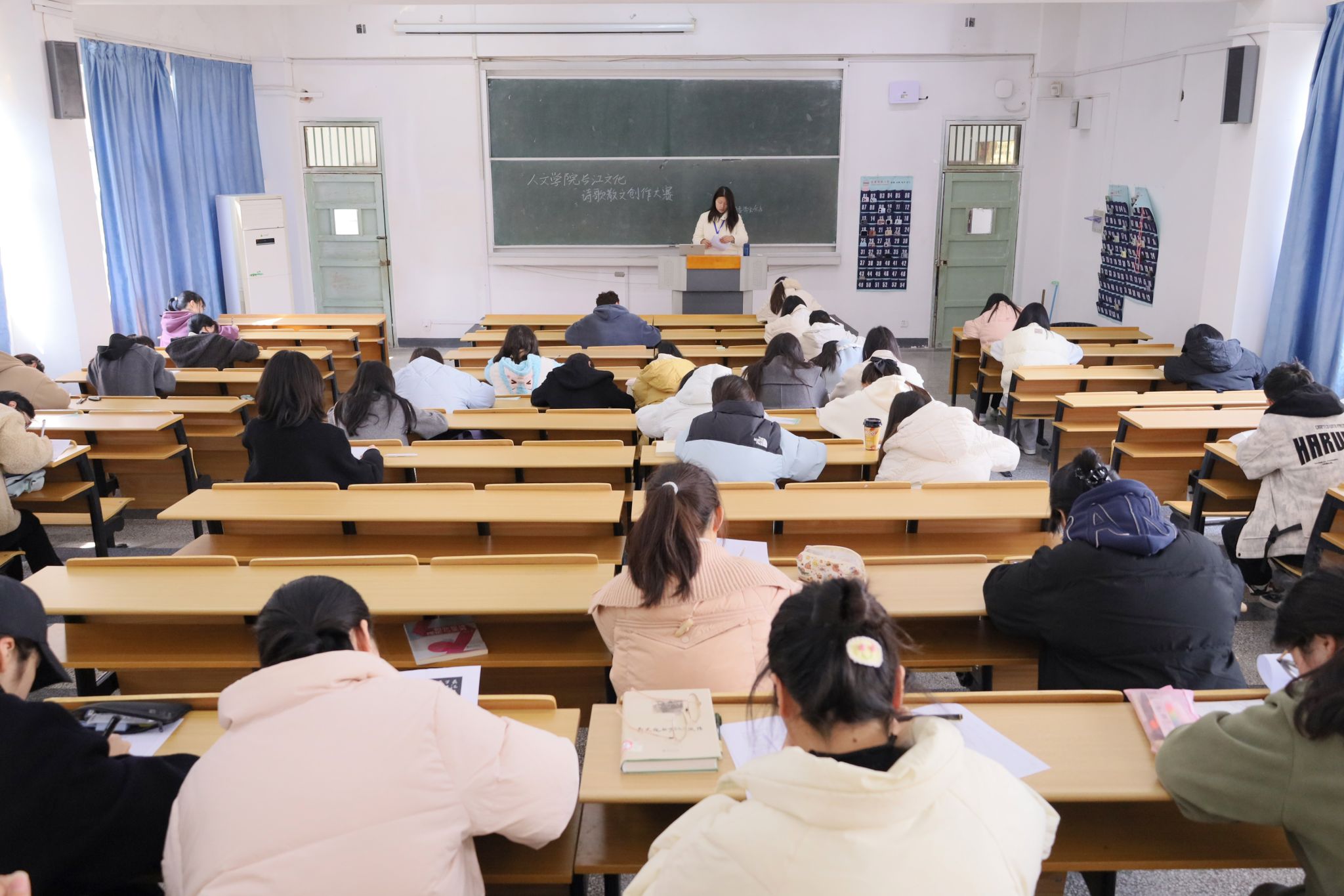 “每个人需要以长江文化为主题,结合安庆地方特色,在两个小时内即兴创作一篇散文或诗歌。”随着监考官宣布作品要求,以“传承长江文脉,书写时代新篇——谱写新时代‘长江之歌’”为主题的长江文化诗歌散文创作大赛顺利开赛,全校150名学生参与比赛。本次活动由人文学院和长江文化研究院联合举办,人文学院团委和《季节风》杂志承办,大学生白鲸文学社、大学生红楼诗会、大学生敬敷文学创造社等社团联合协办。